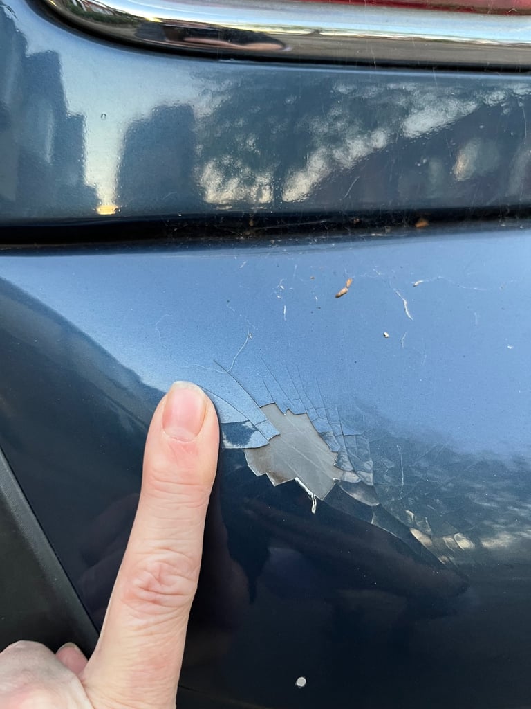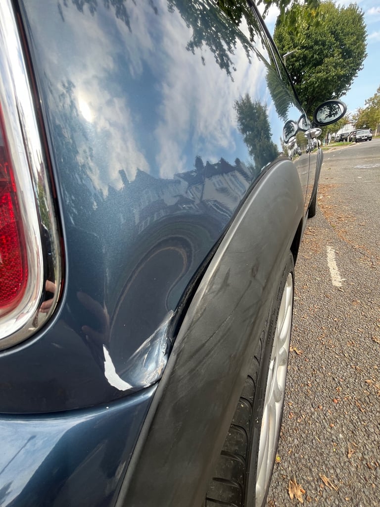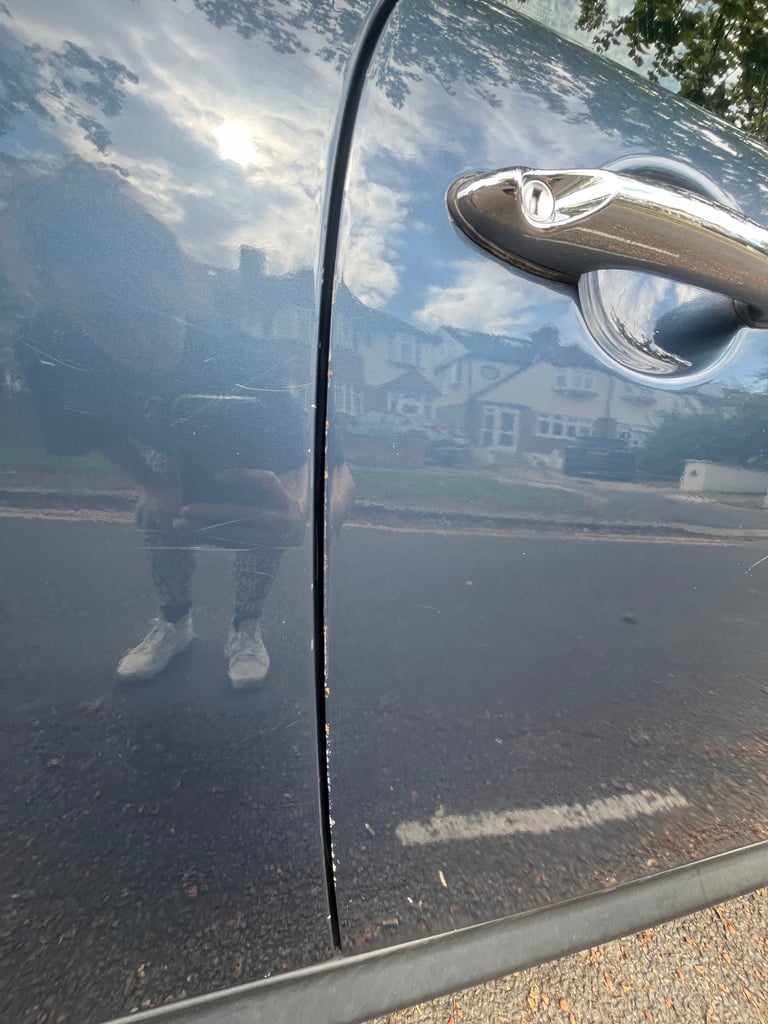 Please see photos as there is a dent and also a little damage to the paint at rear and on edge of door.
